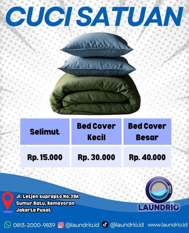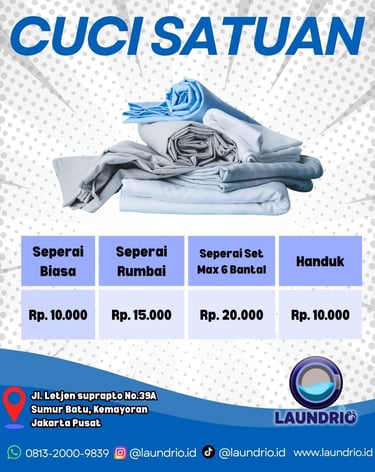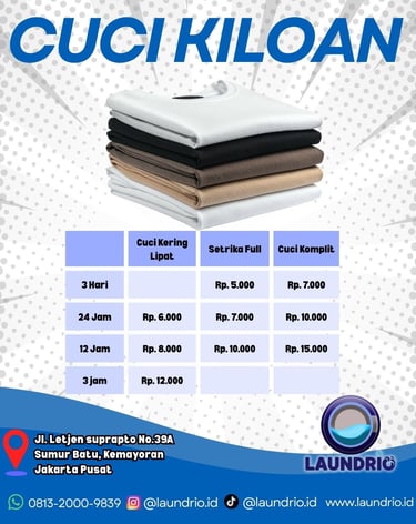 Laundrio berlokasi strategis di Pusat Jakarta. Kami siap menjemput cucian Anda kapan pun! Hubungi kami via WhatsApp atau telepon untuk layanan cepat dan responsif. Laundry jadi mudah, hanya di Laundrio.
